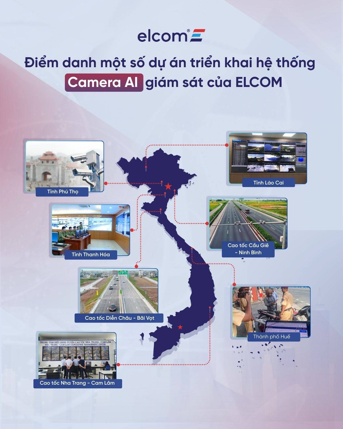 Hệ thống Camera AI giám sát của ELCOM hiện đã được triển khai tại nhiều tỉnh, thành và các tuyến cao tốc trên cả nước.