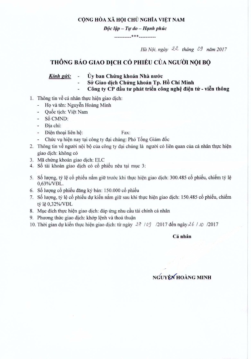 Thông báo giao dịch cổ phiếu của người nội bộ Nguyễn Hoàng Minh